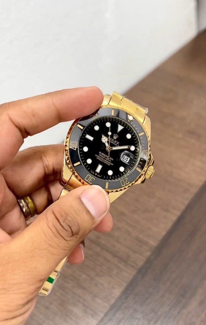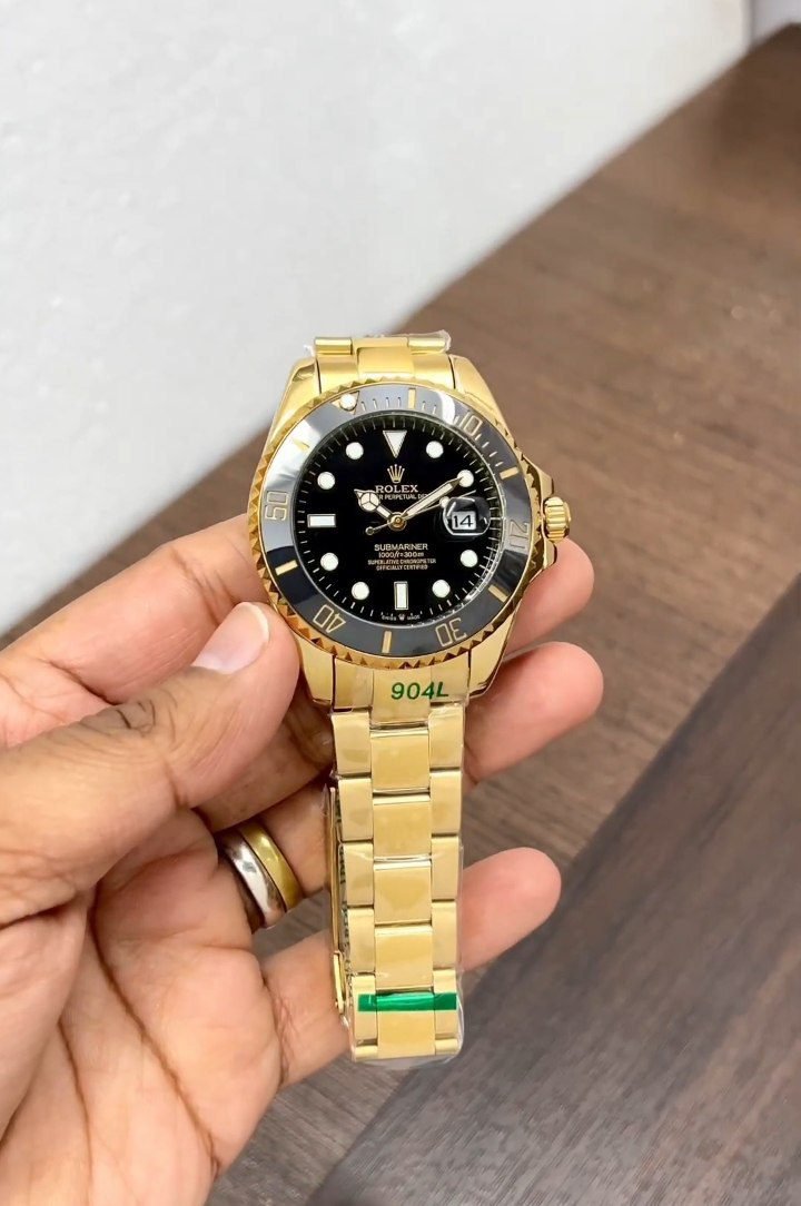 Rolex Submariner Automatic Series Watch stainless steel 3-link luxury gold wrist adjustable bracelet adds a touch of luxury, complemented by a luxurious black dial. Equipped with a heavy original Rolex double buckle lock, it ensures secure wearing. Powered by original Japanese automatic smooth movement machinery.